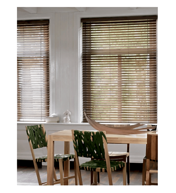 Polywood products are, providing a warm and natural atmosphere to the home. Each wooden slat can be adjusted to gently control the amount of incoming light. The 50mm polywood venetian blind has a strong presence, enhancing the blind’s color and texture.